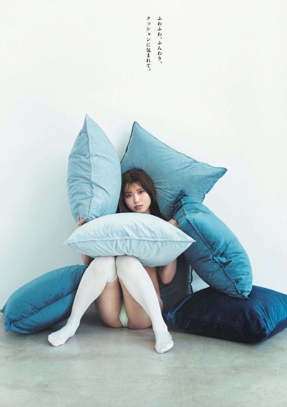 古田 男女問わずにかわいいと思ってもらえる内容にしたかったんですよね。普段からスマホのフォルダに自分がかわいいと思っている写真を入れているので、それを皆さんに見ていただき、参考にしてもらいました。中でもたくさんのクッションに包まれているシーンは自分が提案したカット。色合いもいいし、ものすごく気に入っています。