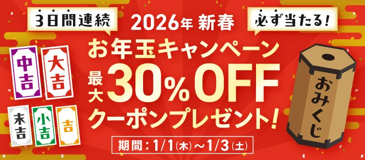 必ず当たる! 「2026年新春お年玉キャンペーン」最大30%OFFクーポンプレゼント!